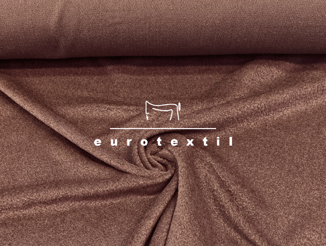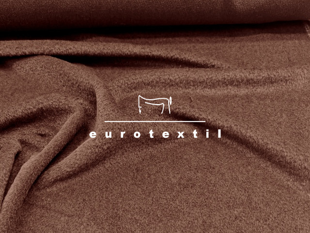 Vastag alpaka kabátszövet, középbarna színben. A szövet sűrű szövésű, struktúrált felületű a magas száltakarótól, mely nagyon jól tartja a meleget, igazi téli anyag.