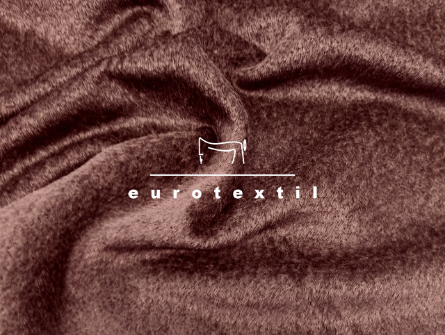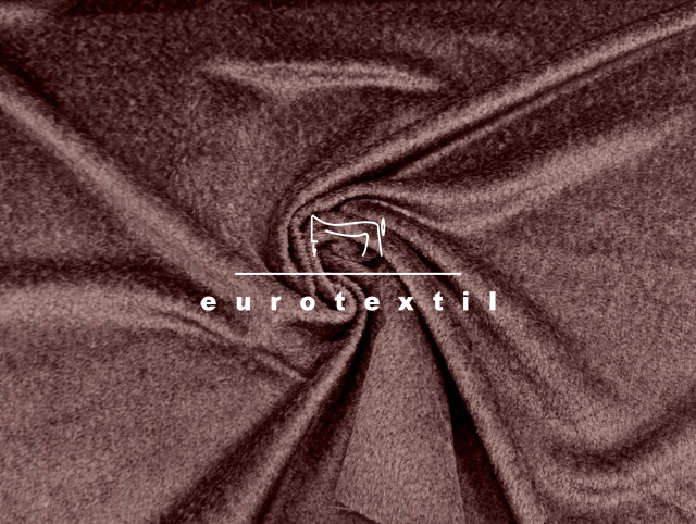 Vastag alpaka kabátszövet, sötét mélybarna színben. A szövet sűrű szövésű, struktúrált felületű a magas száltakarótól, mely nagyon jól tartja a meleget, igazi téli anyag.
