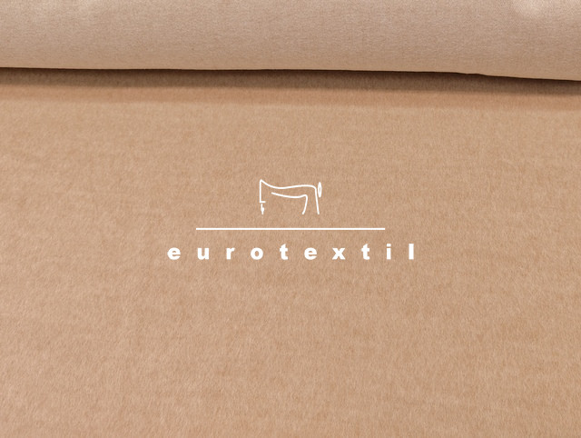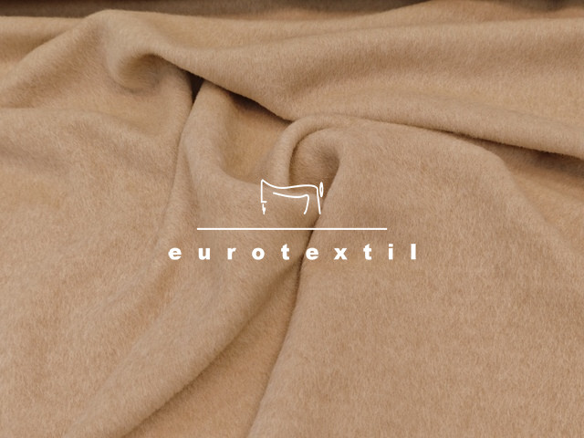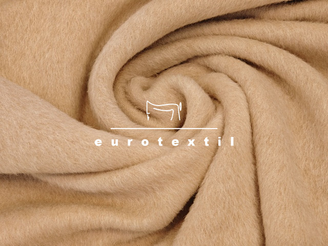 Vastag alpaka kabátszövet, homok színben. A szövet sűrű szövésű, struktúrált felületű a magas száltakarótól, mely nagyon jól tartja a meleget, igazi téli anyag.