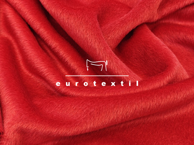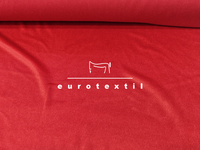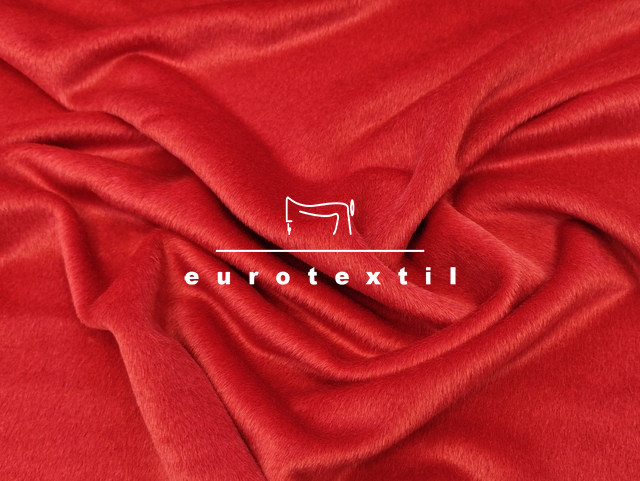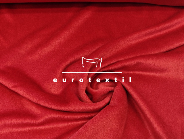 Vastag alpaka kabátszövet, marlboró piros színben. A szövet sűrű szövésű, struktúrált felületű a magas száltakarótól, mely nagyon jól tartja a meleget, igazi téli anyag.