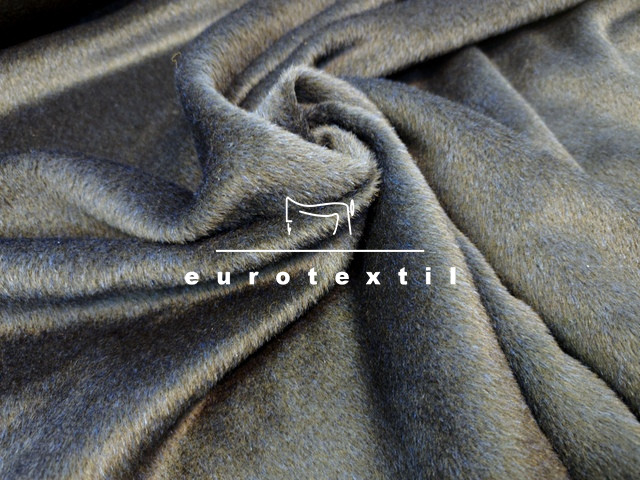 Vastag alpaka kabátszövet, mélykék színben. A szövet sűrű szövésű, struktúrált felületű a magas száltakarótól, mely nagyon jól tartja a meleget, igazi téli anyag.