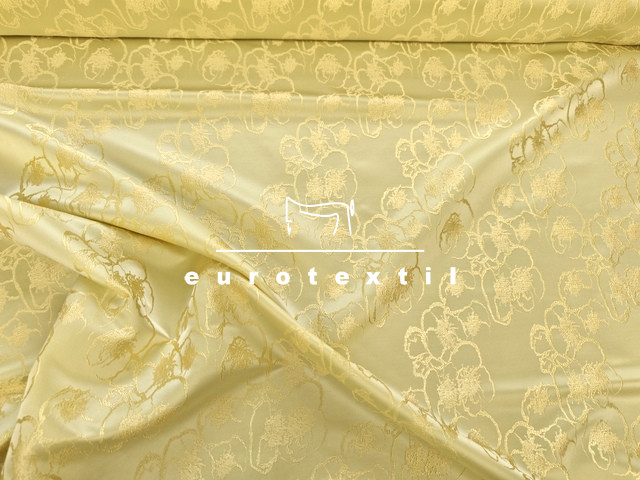 Finom fényű virág mintás brokát anyag.Citrom sárga alapszínen virágokkal.