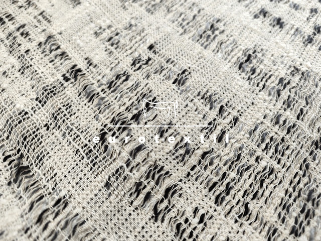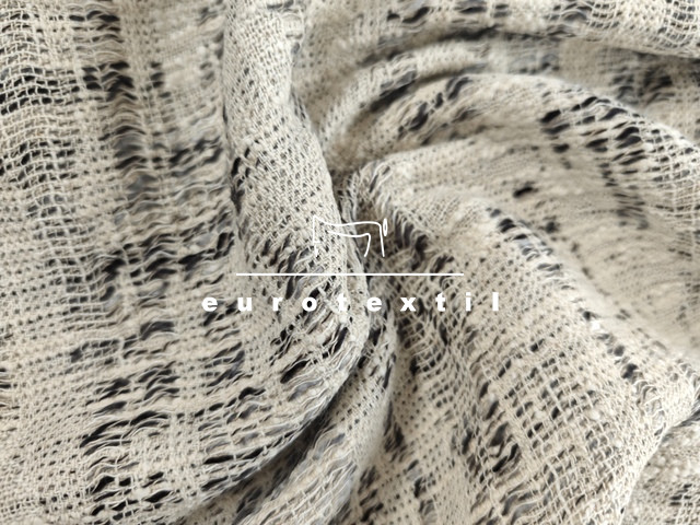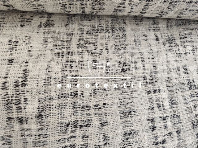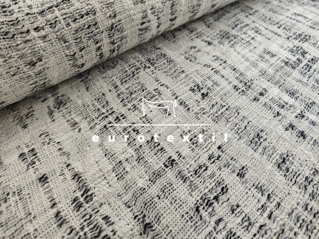 Középvastag buklé anyag, elegáns ekrű, szürke színkombinációban. Jól alakítható és kiváló tartású.Kosztümök, Chanel blézerek,ruhák, szoknyák készítéséhez ajánljuk.