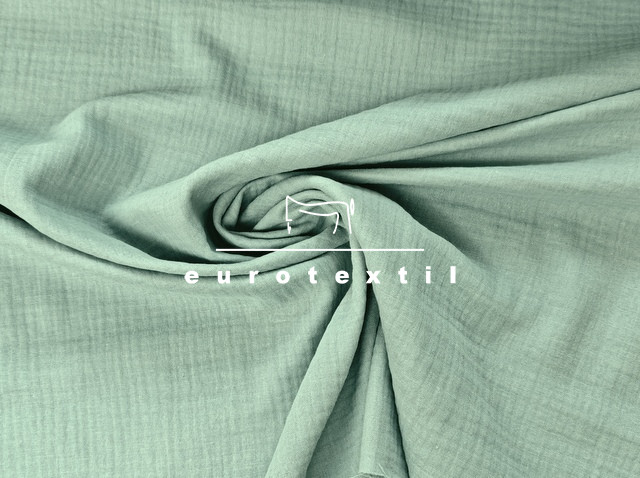 Vízzöld színű tiszta pamut duplagéz anyag. Puha, jó tapintású, jó nedvszívó képességű, természetes anyag, melyet ingek, ruhák, blúzok, gyermekruhák dekorációk készítéséhez ajánljuk.