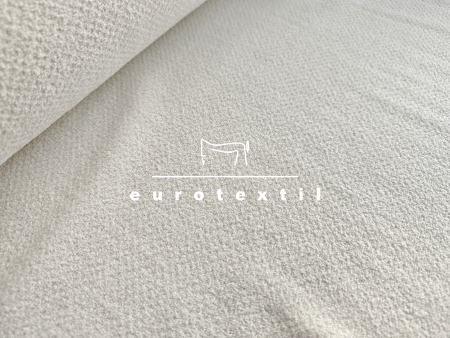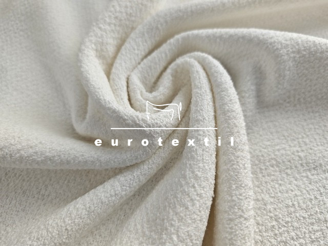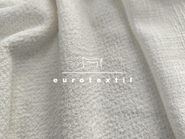 Középvastag egyszínű buklé anyag.Elegáns és klasszikus, törtfehér színű szövet. Jól alakítható és kiváló tartású.Kosztümök, Chanel blézerek,ruhák, szoknyák készítéséhez ajánljuk.