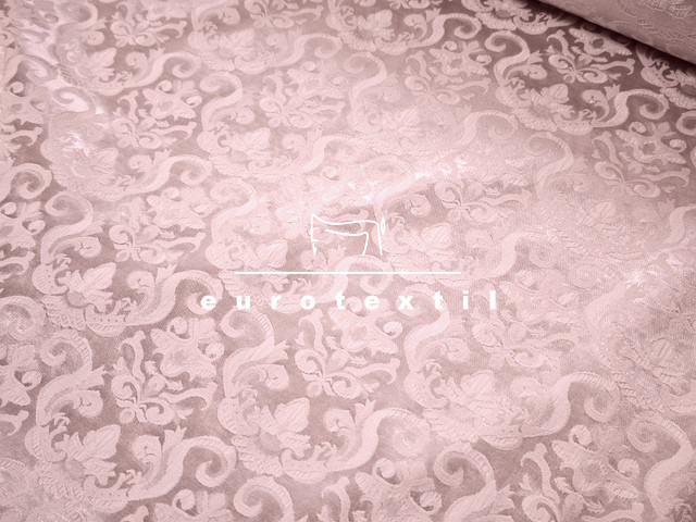 Jó alakítható, nem gyűrődős, önmagában mintás anyag, világos mályva színben.