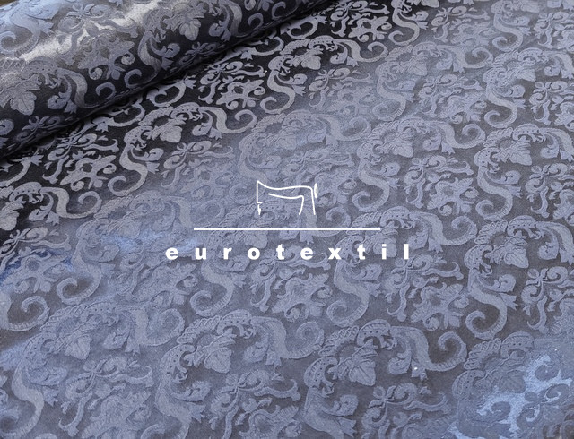 Fényes felületű elasztikus kevert szálas jacquard anyag.