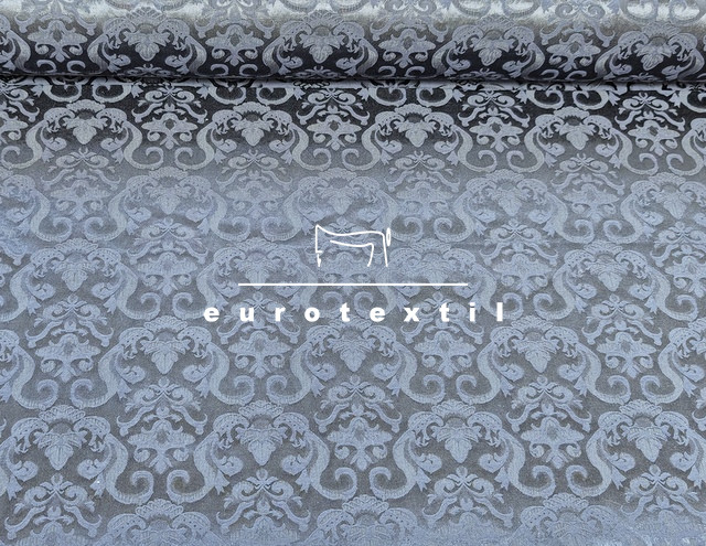 Jó alakítható, nem gyűrődős, önmagában mintás anyag, sötétkék színben.