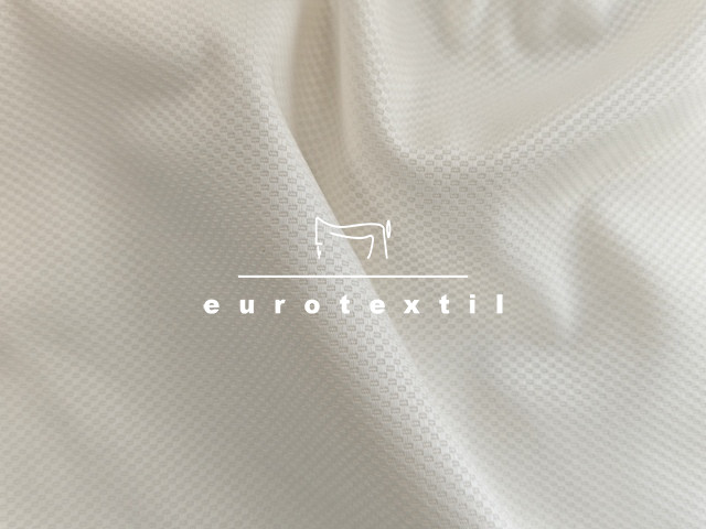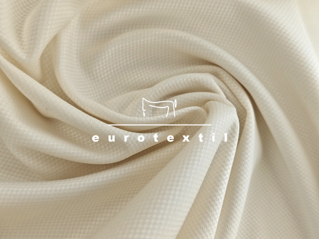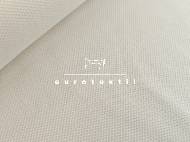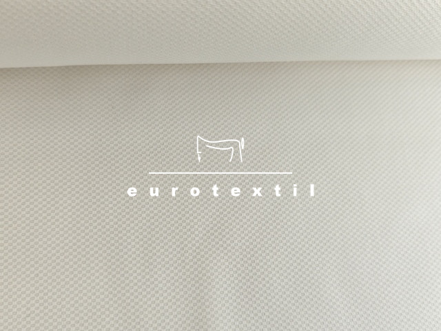 Piké szövésű elasztikus pamut vászon anyag, törtfehér színben. Jó légáteresztő, puha tapintású.