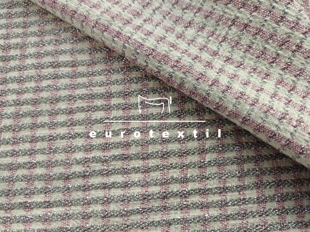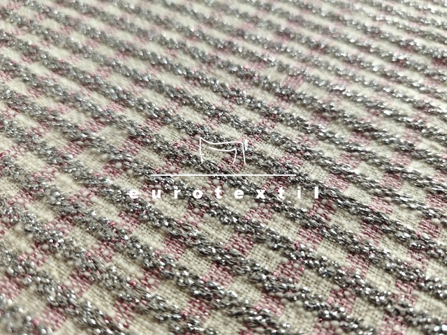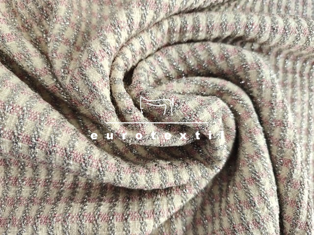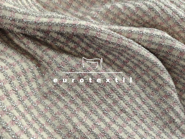 Klasszikus és elegáns, ezüst és rózsaszín fémszállal átszőtt krém alapú szövet.Kosztümök, Chanel blézerek,ruhák, szoknyák készítéséhez ajánljuk.