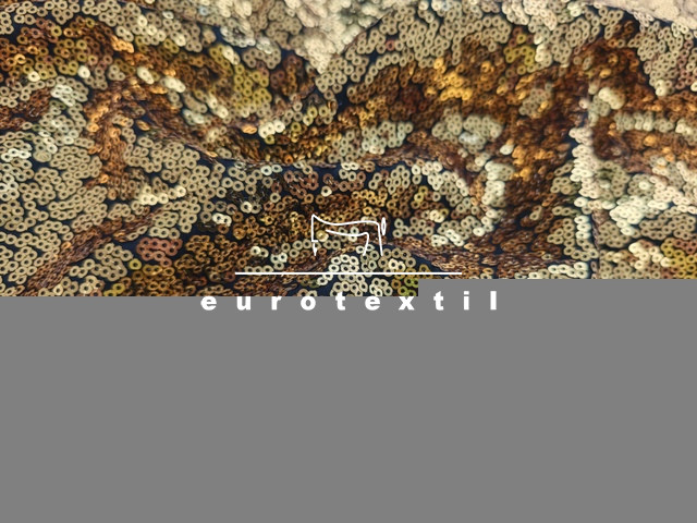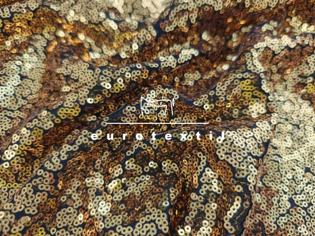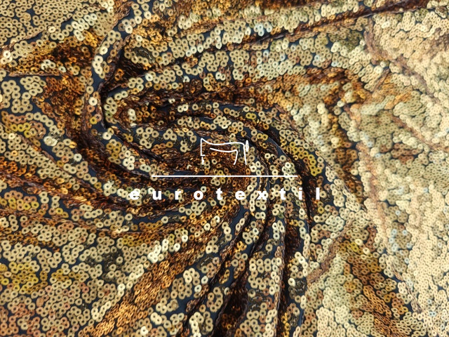 Lágy vékony jersey alapon varrott flitteres alkalmi anyag.