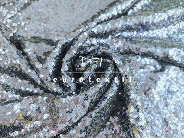 Lágy vékony jersey alapon varrott, flitteres alkalmi anyag.