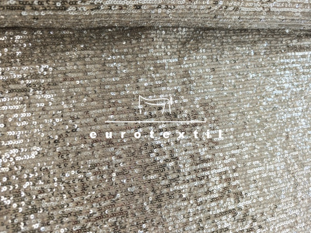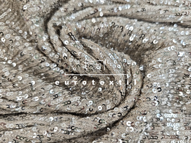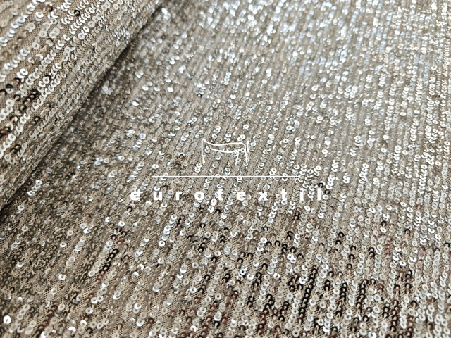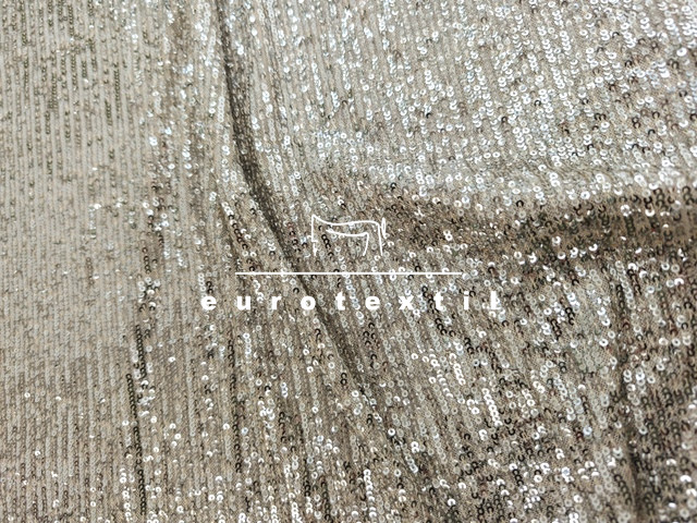 Lágy vékony tüll alapon varrott, flitteres Krém alapon fényes ezüst színű flitterrel.