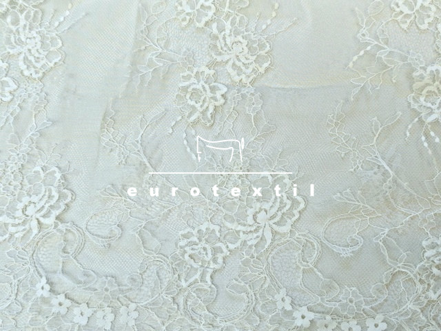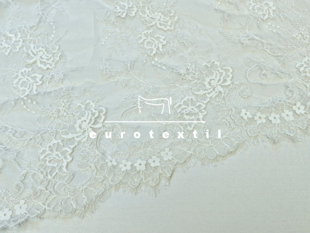 Légies, könnyű, virág mintázatú hímzett tüll csipke, fehér színben. Mindkét oldalon bordűrös .