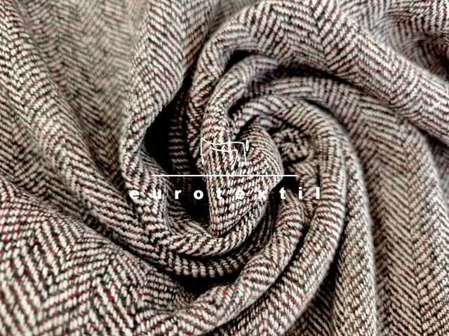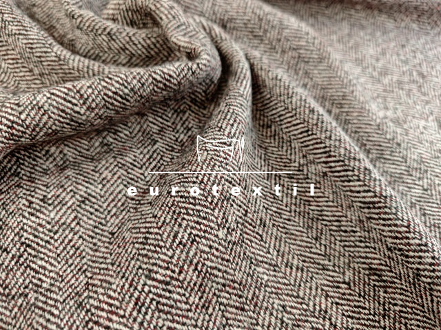 Halszálka mintás,kevert szálas gyapjú szövet bordó színben. Középvastag, átmenti kabátok, sport zakók , ruhák, kosztümök készítéséhez ajánljuk.