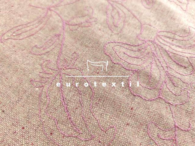 Hímzett kevertszálas gyapjúszövet, rózsaszínben. Kabátok, kosztümök, ruhák készítéséhez ajánljuk.