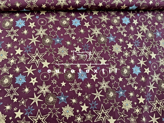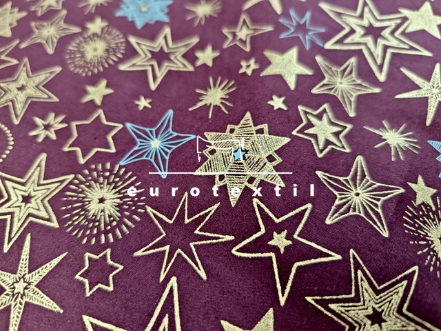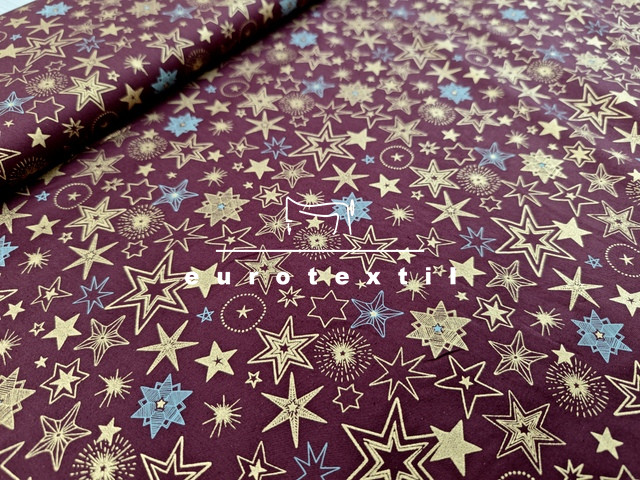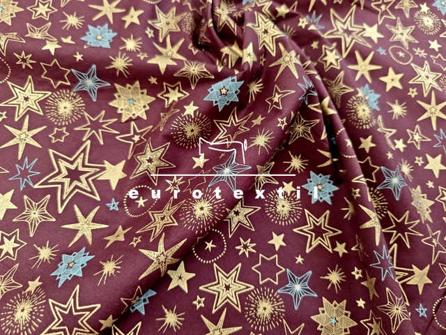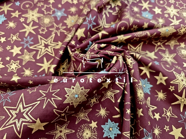 Sötét bordó alapon arannyal nyomott csillag mintával.
