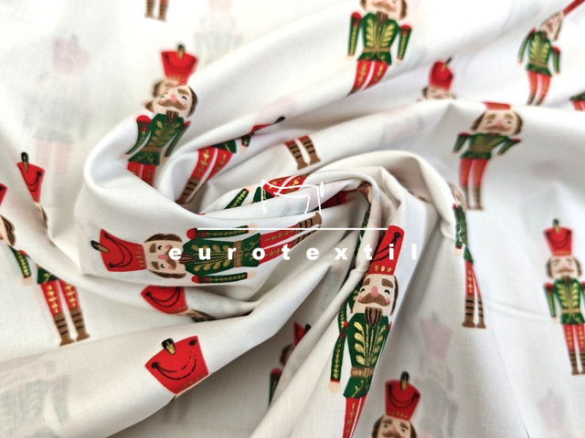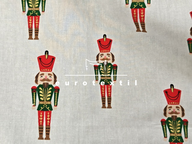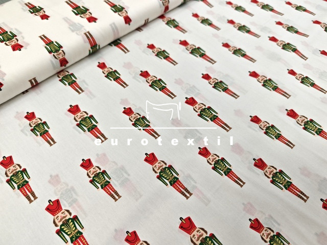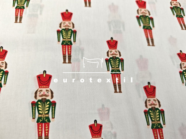 Fehér alapon diótörő mintával, arany díszítéssel.