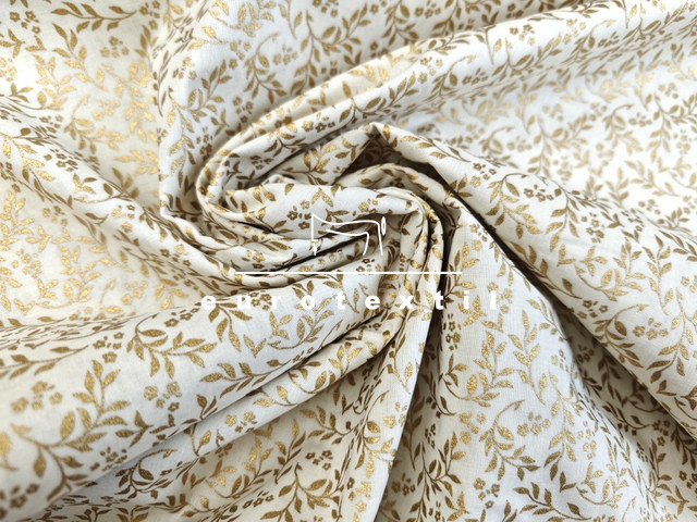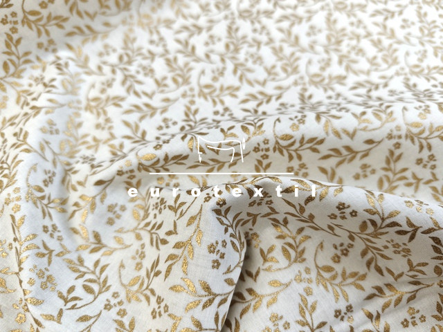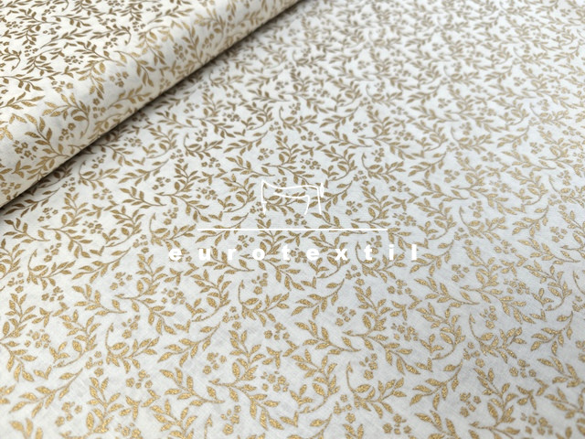 Törtfehér alapon kacskaringós mintával, arany díszítéssel.