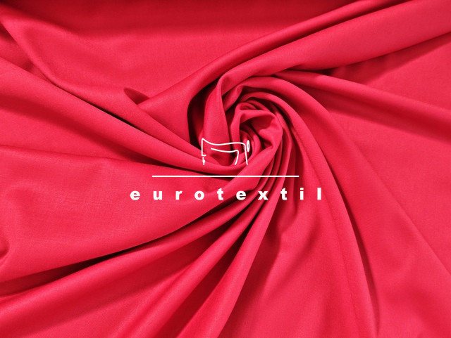 Kevert szálas, sávoly szövésű közép vastag szövet. Finom felületű, és lágy fényű piros színben. Univerzális vastagsága és fénye miatt ajánljuk hölgyeknek és uraknak egyaránt. Hétköznapi és elegáns kosztümök, ruhák, öltönyök, nadrágok készítéséhez kiváló alapanyag.