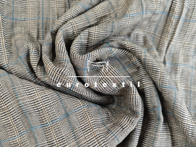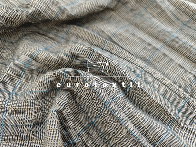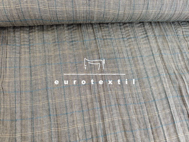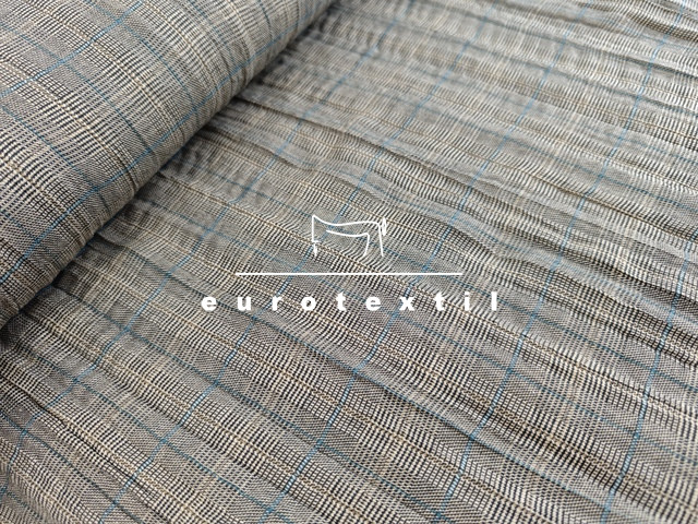 Gyűrt kevertszálas kockás szövet, keki és türkiz színben. Kosztümök, zakók, szoknyák készítéséhez ajánljuk.