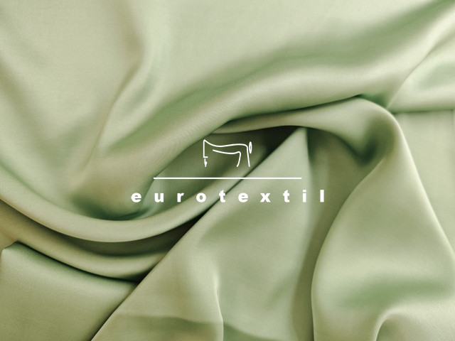 Lágy esésű ,finom fényű elegáns viszkóz szatén anyag, világos menta színben.