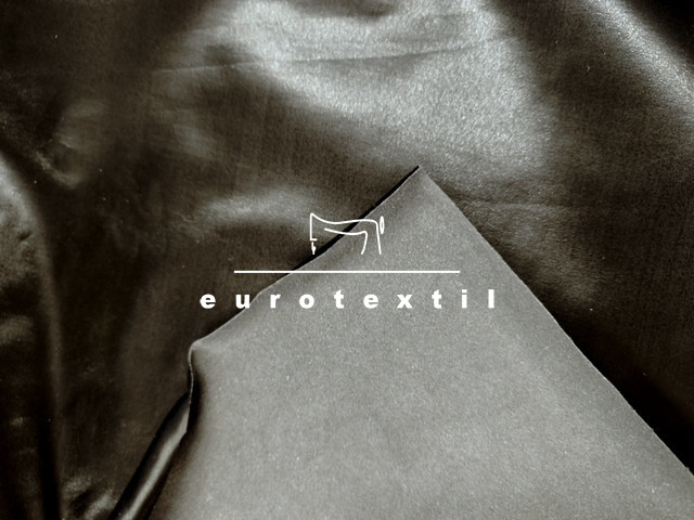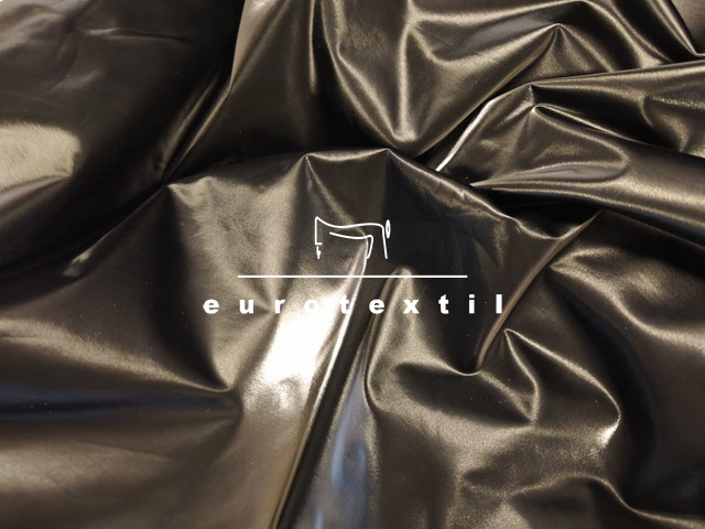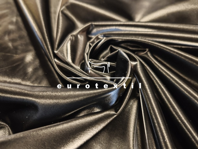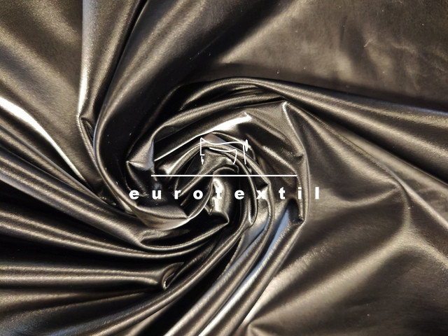 Fényes vizes hatású, lakk felületű, rugalmas, puha jersey. Fekete jersey alapon fekete lakk felülettel. Alkalmi felsők, ruhák, jelmezek, díszítések készítéséhez ajánlott alapanyag.