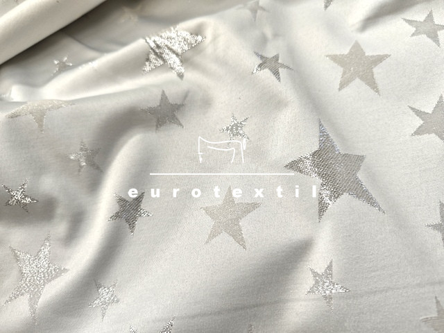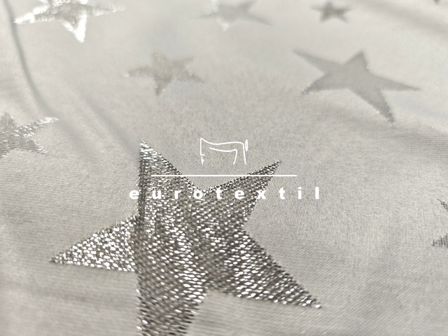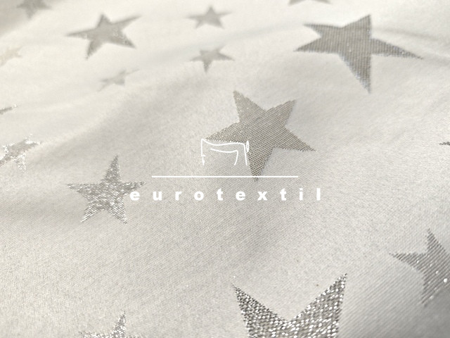Kevert szálas damaszt anyag, ezüst színű lurex szállal átszőve.