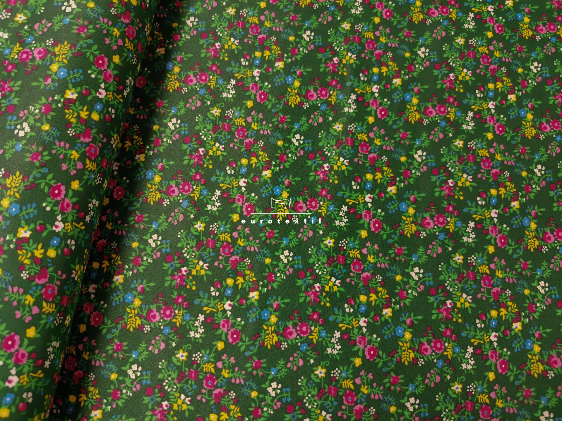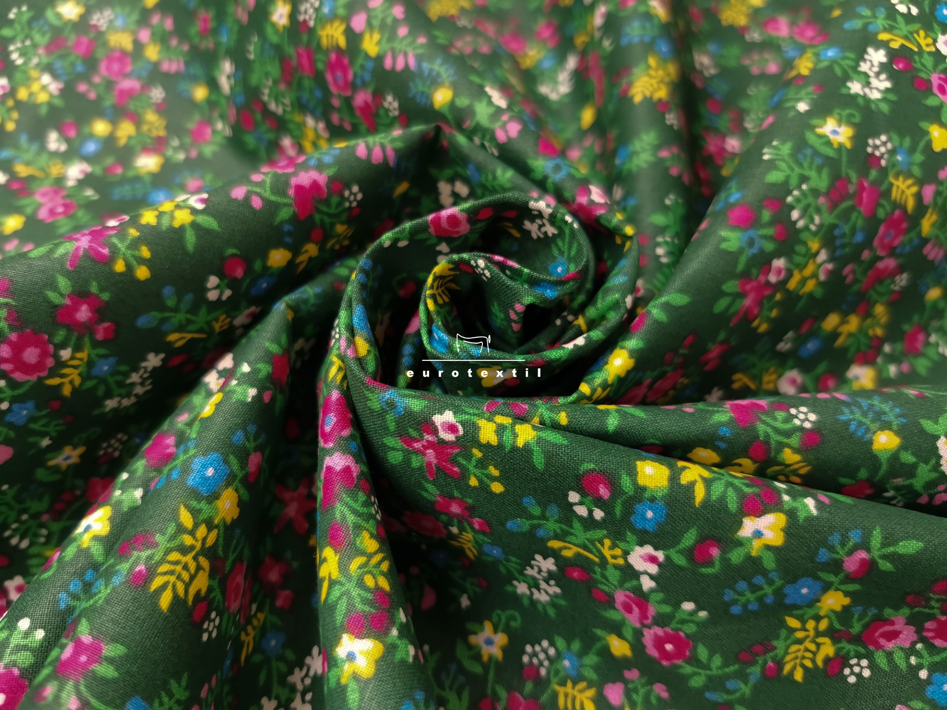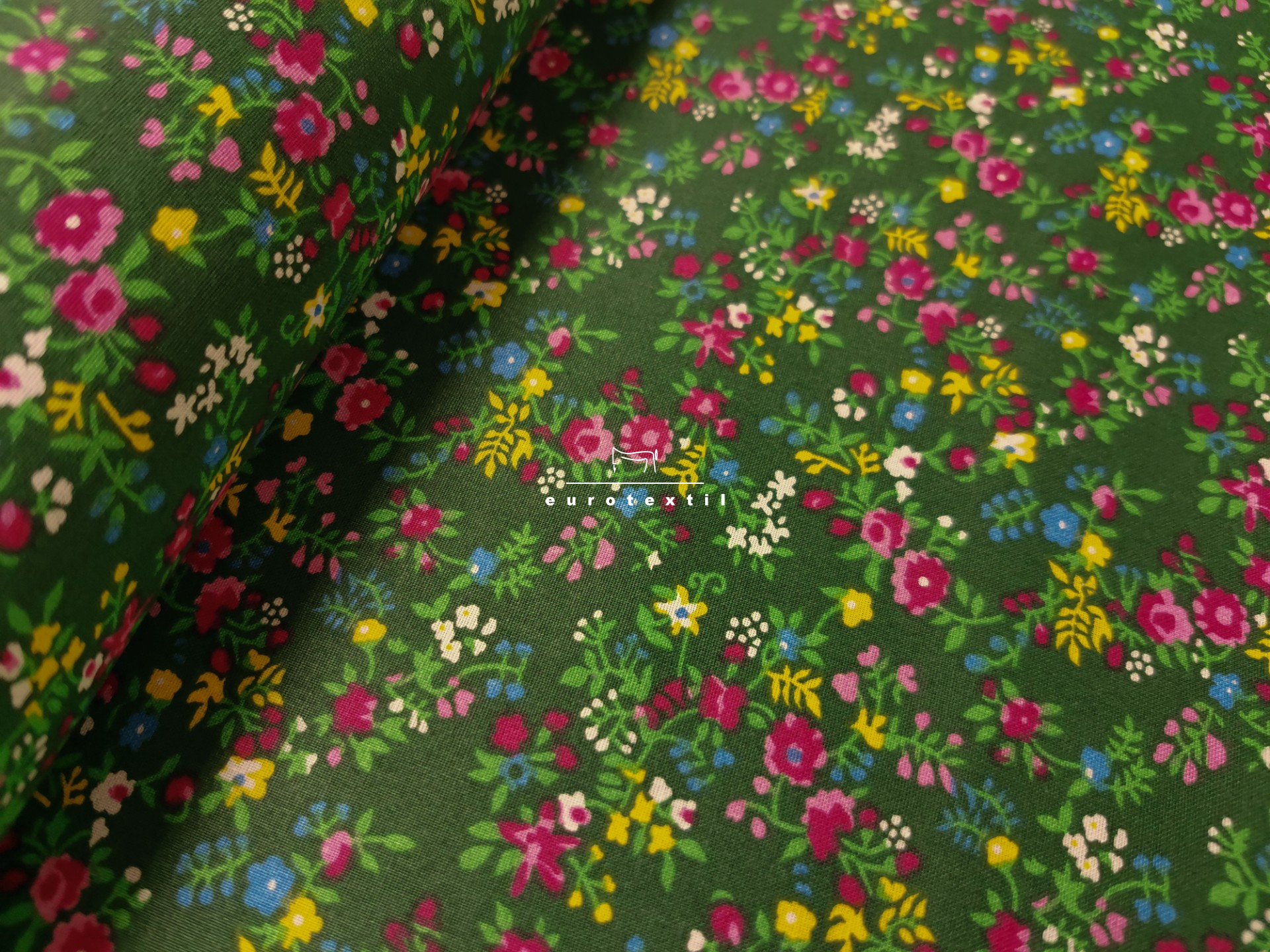 Nyomott mintás apró virágos pamut karton. Női és gyermek ruhák, lakástextilek, dekorációk, patchwork munkák készítéséhez ajánljuk.