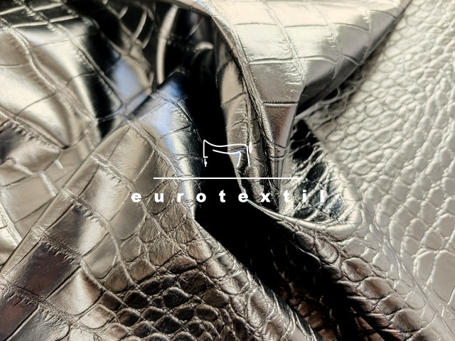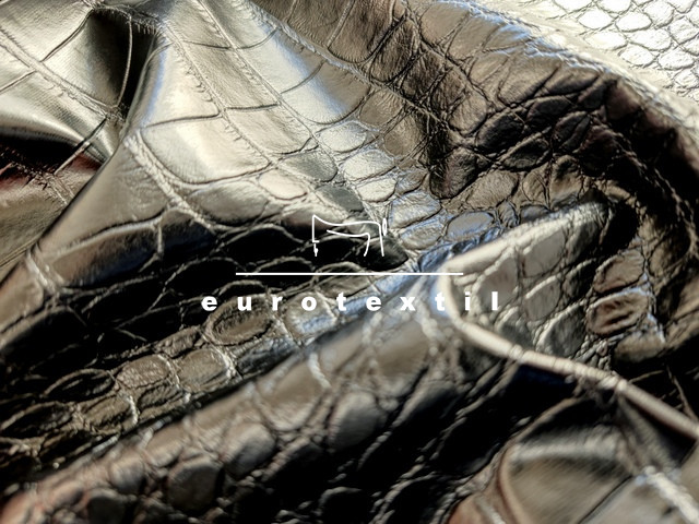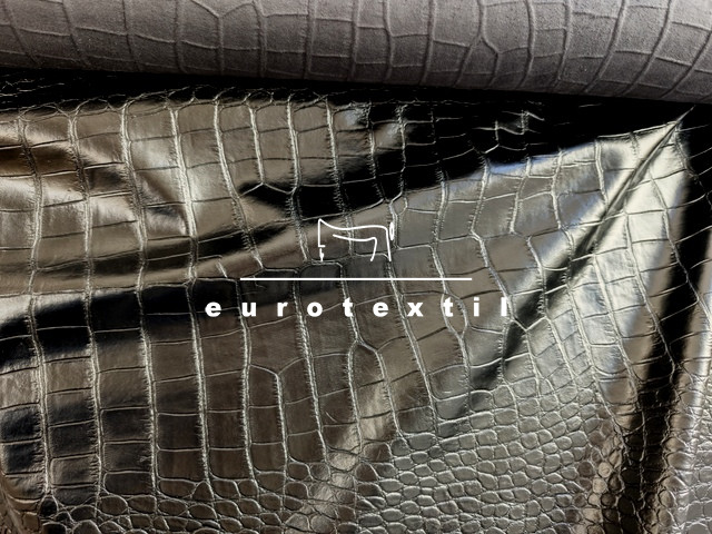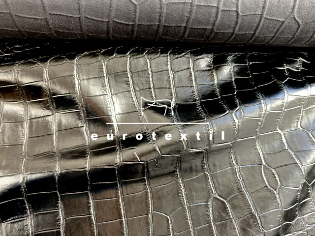 Vékony önmagában mintás műbőr fekete színben. Fekete viszkóz jersey alapon matt, puha, kígyómintázatú fekete bőr felülettel. Ruhák, szoknyák, blézerek, díszítések készítésére ajánjuk.