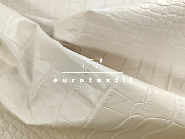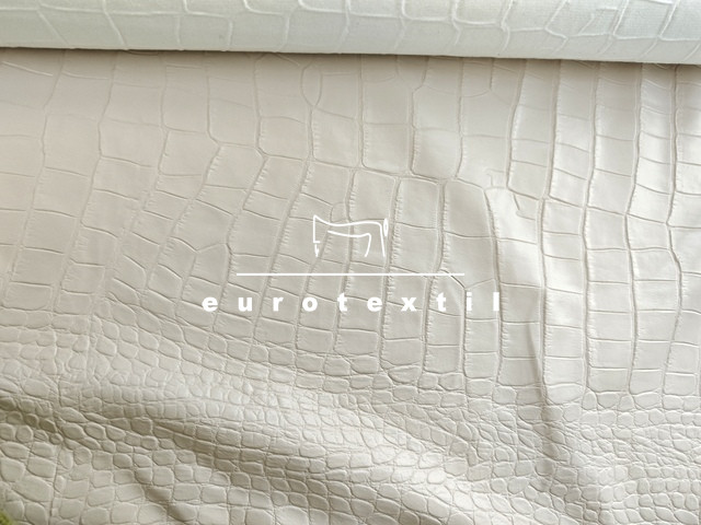 Vékony önmagában mintás műbőr ekrű színben. Fehér viszkóz jersey alapon matt, puha, kígyómintázatú ekrű bőr felülettel. Ruhák, szoknyák, blézerek, díszítések készítésére ajánjuk.