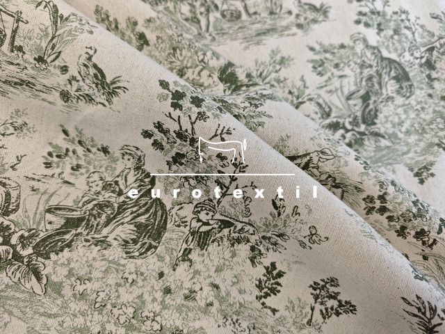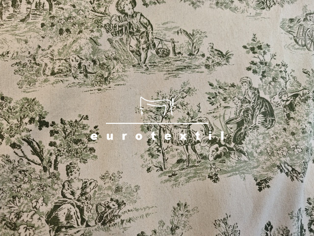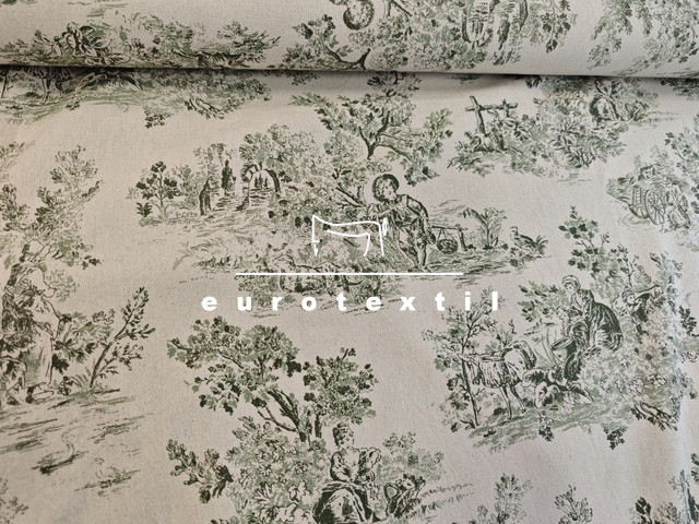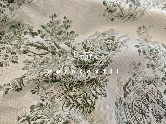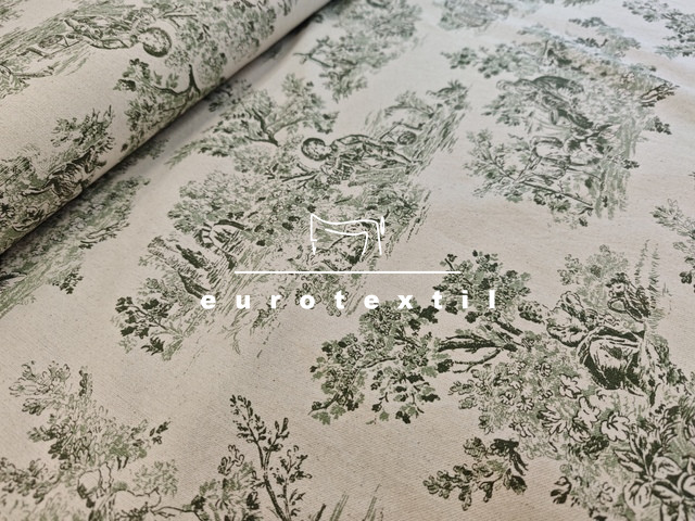 Középvastag, puha tapintású natúr alapon keki zöld mintázattal. Alkalmas dekorációk, függöny, terítő, egyéb lakástextil készítéséhez. Javasoljuk táskák, népviseletek, kötények varrására is.
