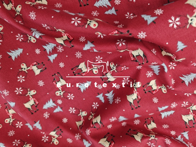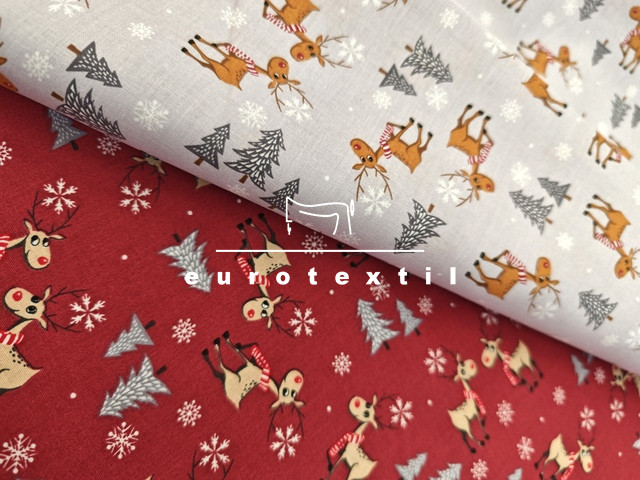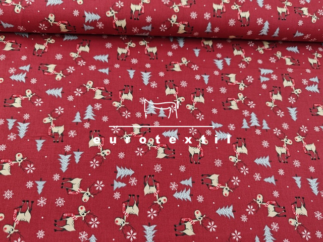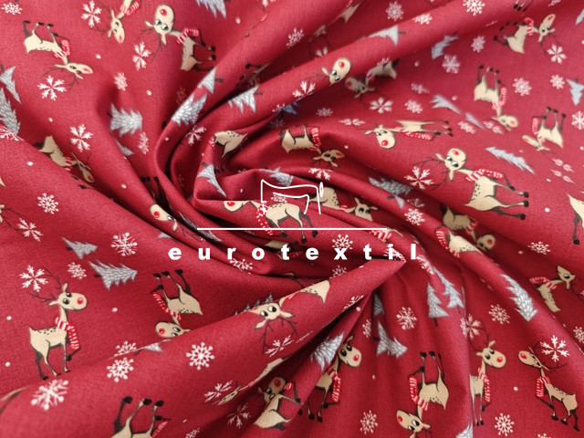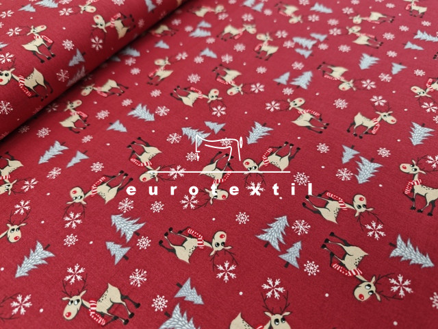 Bordó alapon kis szarvasos mintával.