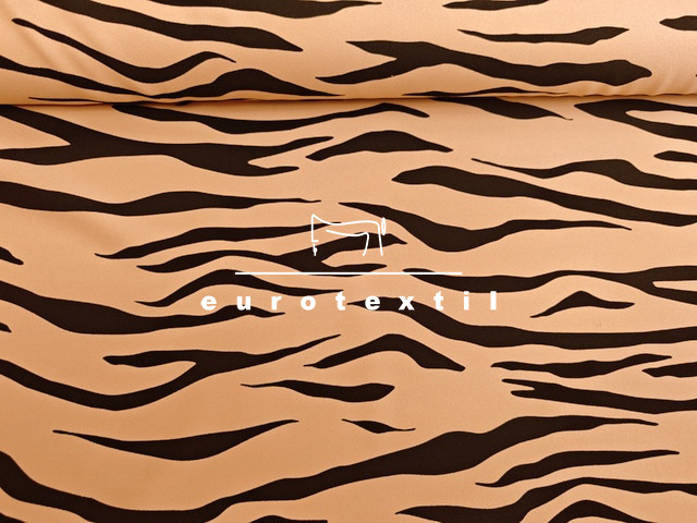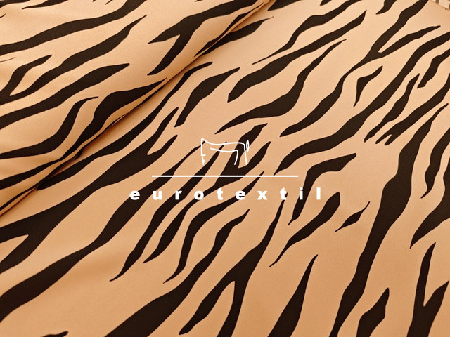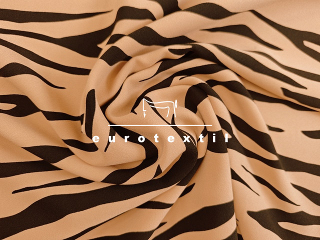 Vastag matt, zsorzsett szövésű nehézselyem, sötét bézs alapon fekete sávokkal. Extra modern megjelenést kölcsönöz ez a különleges minta.