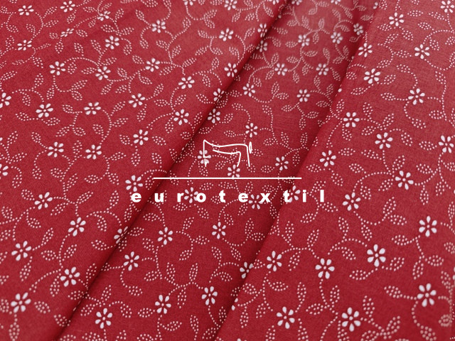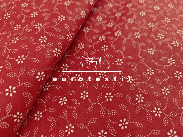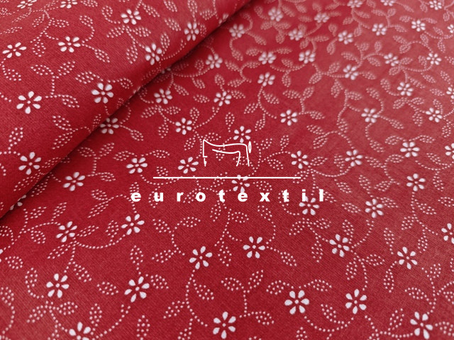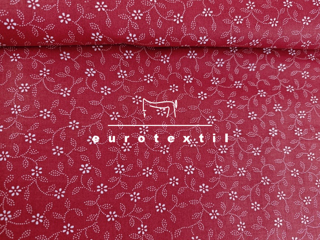 Nyomott mintás pamut karton, bordó alapon virág mintával. Asztalterítők, lakástextilek, ágyneműk készítéséhez ajánljuk.