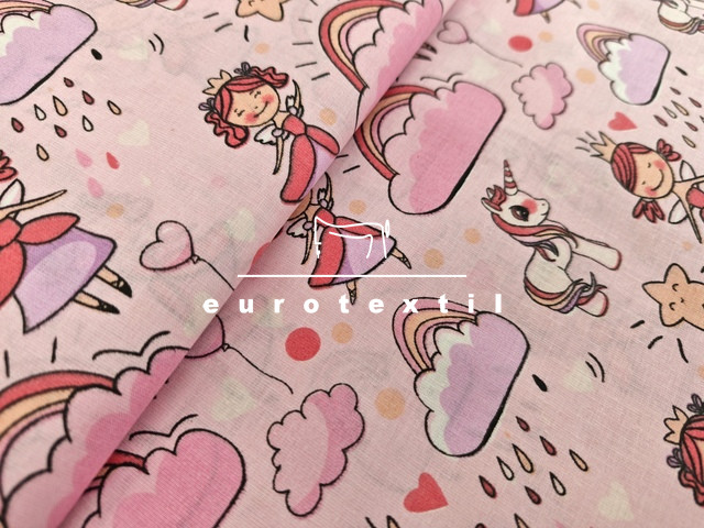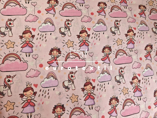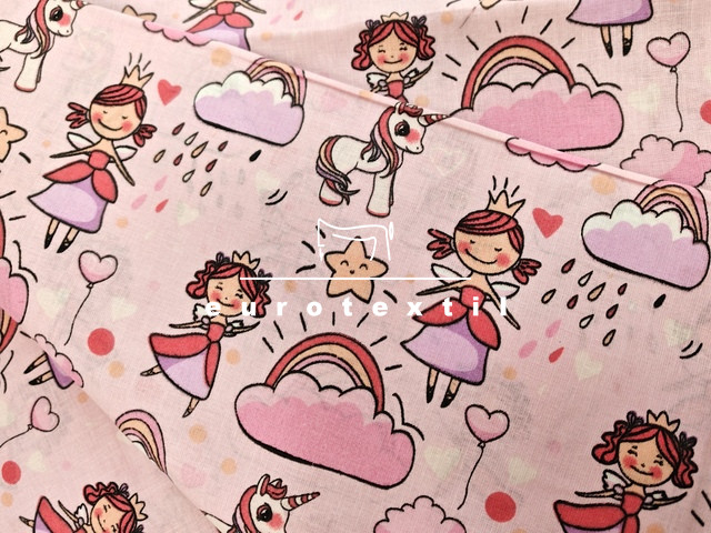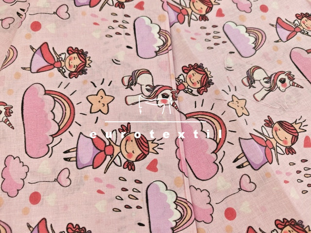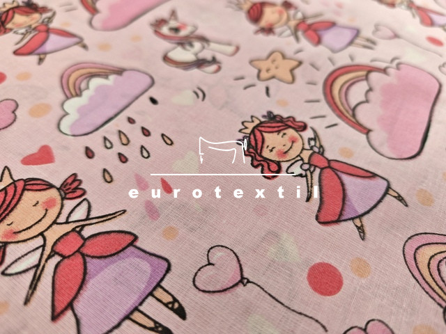 Nyomott mintás pamut karton, rózsaszín alapon lányos mintával. Lakástextilek, ágyneműk készítéséhez ajánljuk.