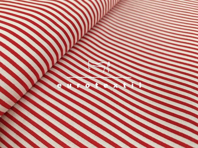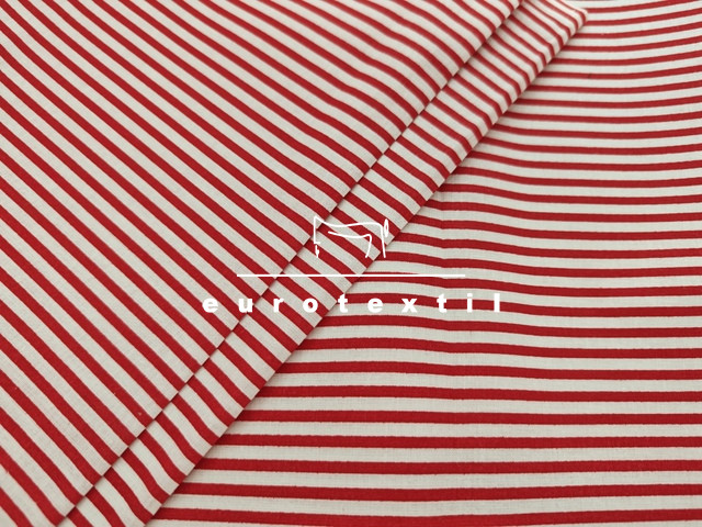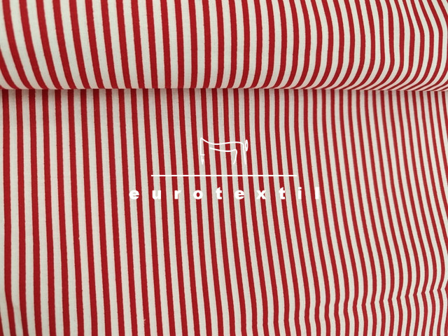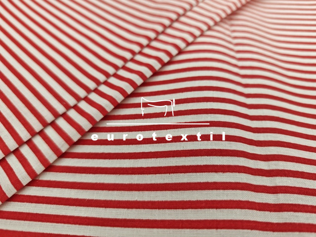 Nyomott mintás pamut karton, fehér-piros hosszanti sűrűcsíkos mintával. Lakástextilek, ágyneműk készítéséhez ajánljuk.