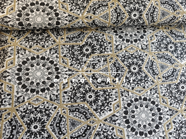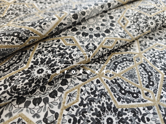 Nyomott mintás pamut karton,fehér alapon szürke mozaik mintával. Lakástextilek, ágyneműk, Nyári ruhák, gyermek ruhák készítéséhez ajánljuk.