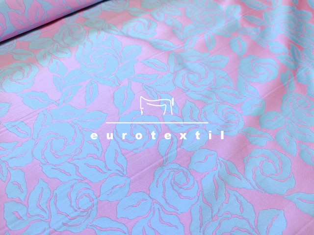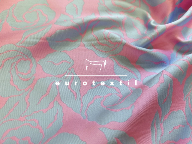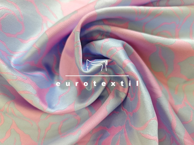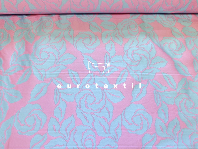 Finom fényű virág mintás düsessz minőségű jacquard anyag.Pasztell rózsaszín és pasztell kék virágokkal.
